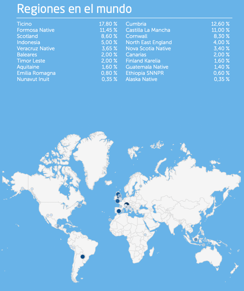 Ancestria que evalua tu procedencia de los diferentes continentes y grupos étnicos alrededor del mundo.
